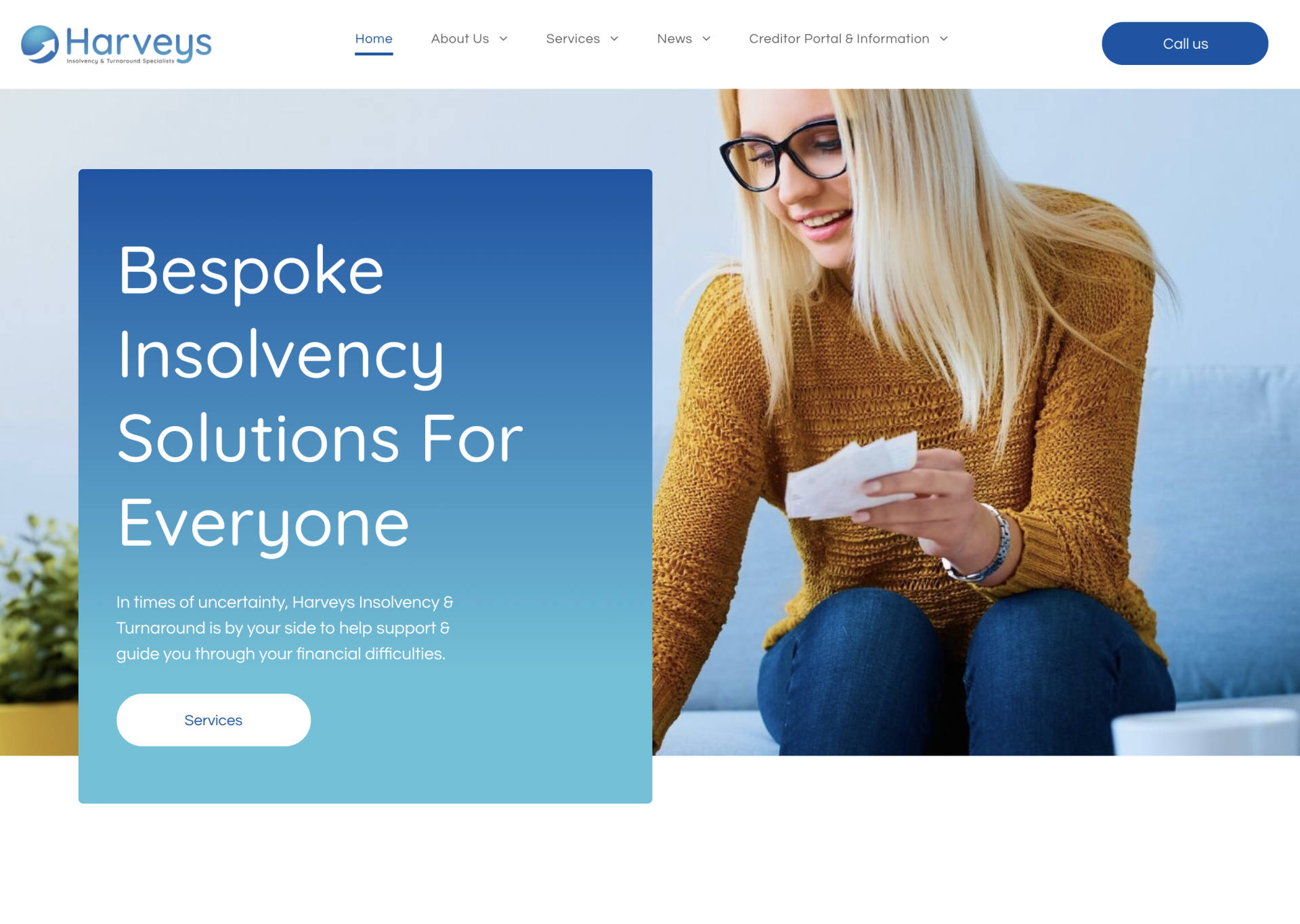 Harveys Insolvency in Newbury needed a updated brand and website update. beHIVE web design Manchester took on the take with some fantastic results.